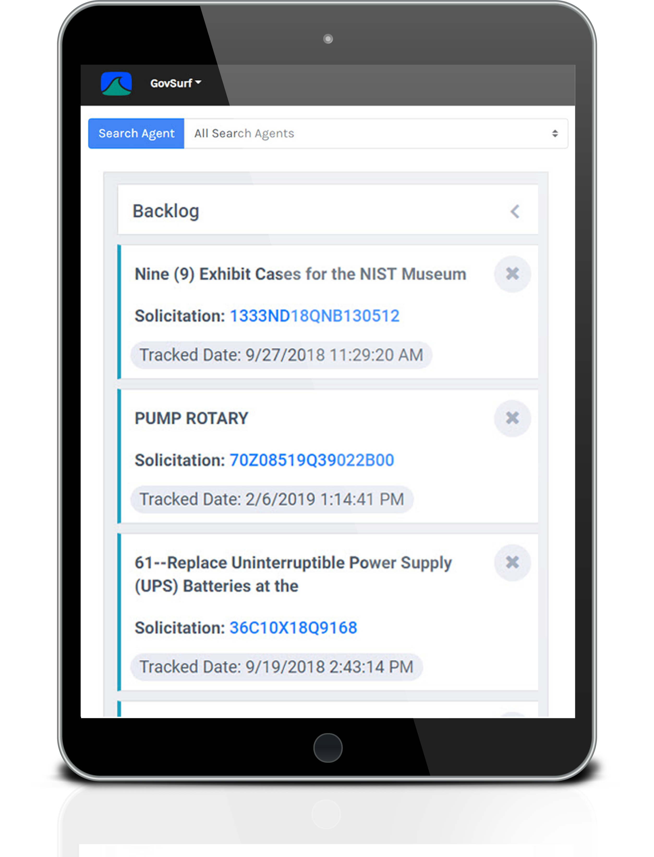 Every day, the US Government publishes an ocean of information, GovSurf transforms that data into an Ocean of Opportunity. When you bid on a government contract you want to know everything about it, GovSurf combines information from multiple government databases to provide a comprehensive profile of information whether it’s business opportunities, spending records, or vendor profiles. GovSurf turns government data into something you can act on, right now, to find new business.